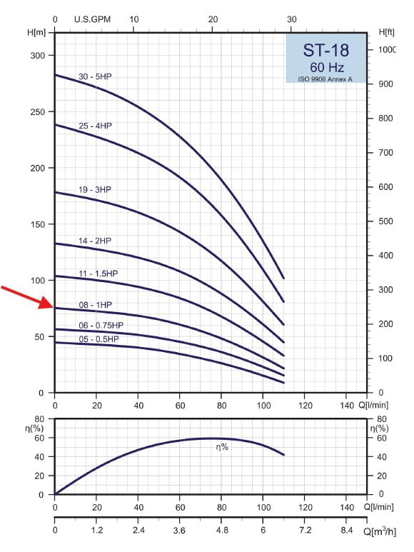 ST 18-08 0.75 1 Head (ft.) 213.3 173.9 167.3 157.5 144.4 131.2 95.1