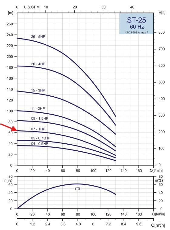 ST 25-07 0.75 1 Head (ft.) 213.3 173.9 167.3 157.5 144.4 131.2 95.1