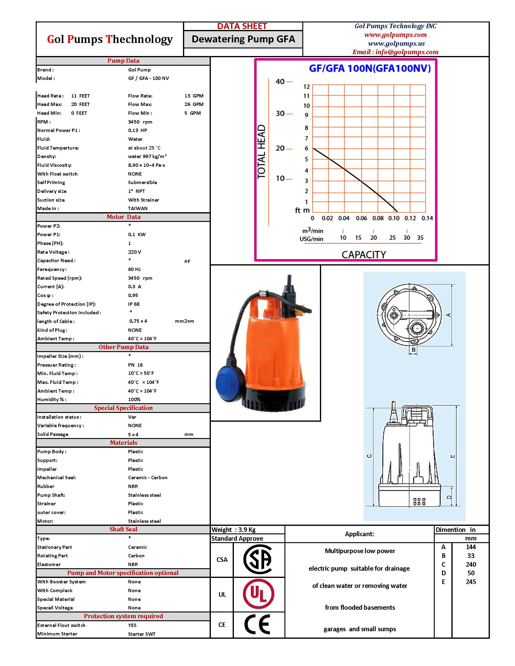 Plastic Construction, lightweight, and easy to carry for various applications and working sites. The GFA series is suitable for use with clear water that does not contain abrasive particles.