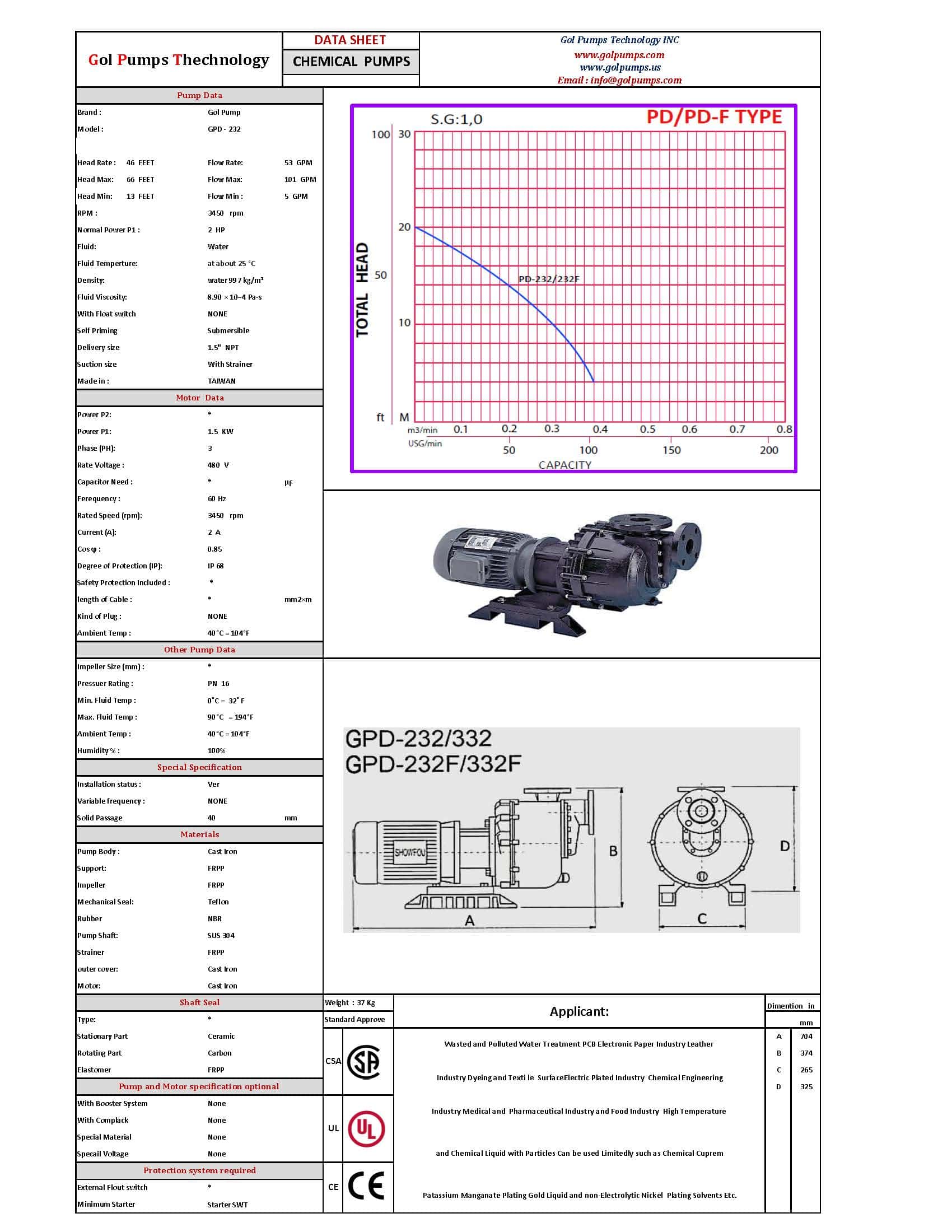 FRPP | PVDF | POWER | PHASE | VOLT | PUMP OUTLET DISCHARGE | GPH | MAX.HEAD | MAX.FLOW | ||