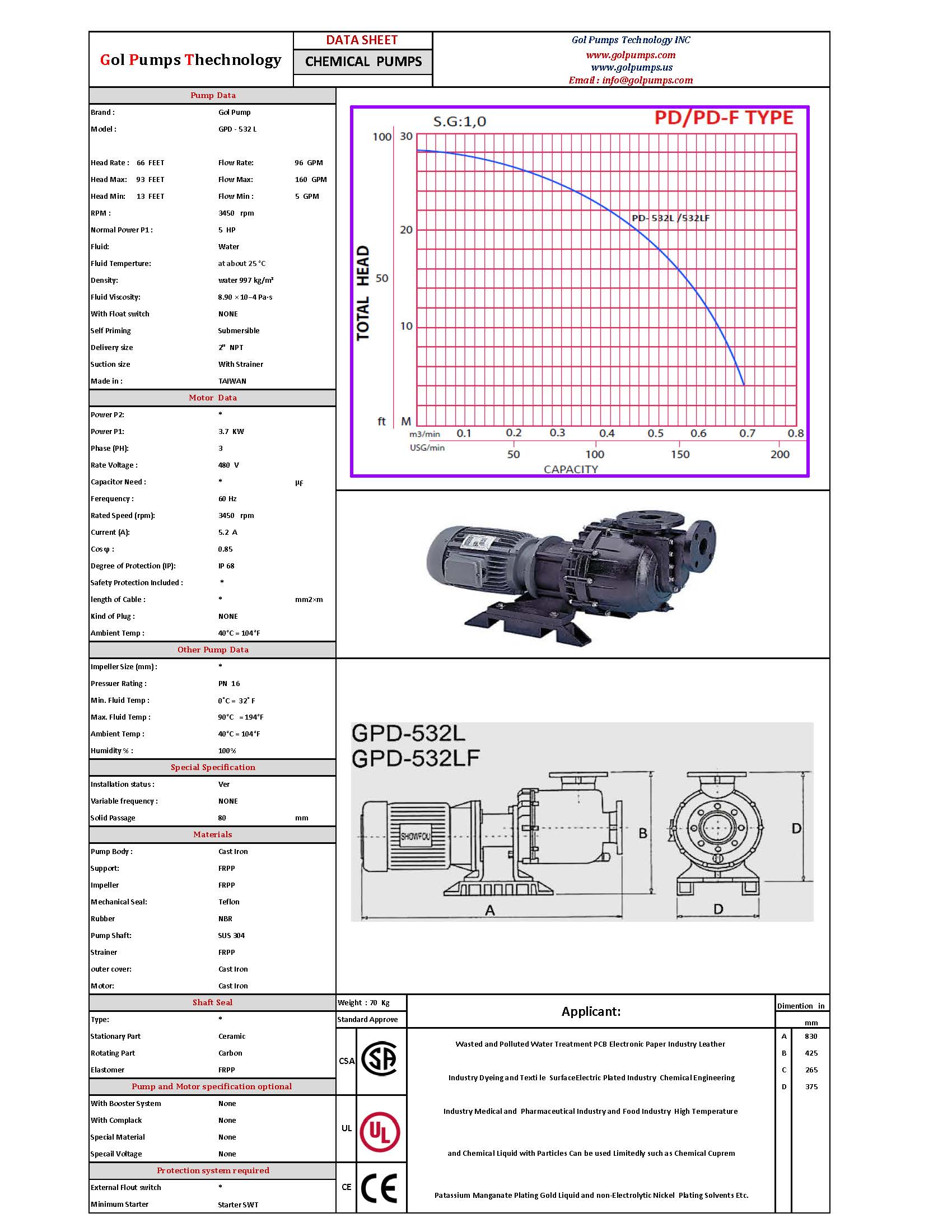 Gol pump provides FRPP and PVDF pump body to meet customer’s requirement.
