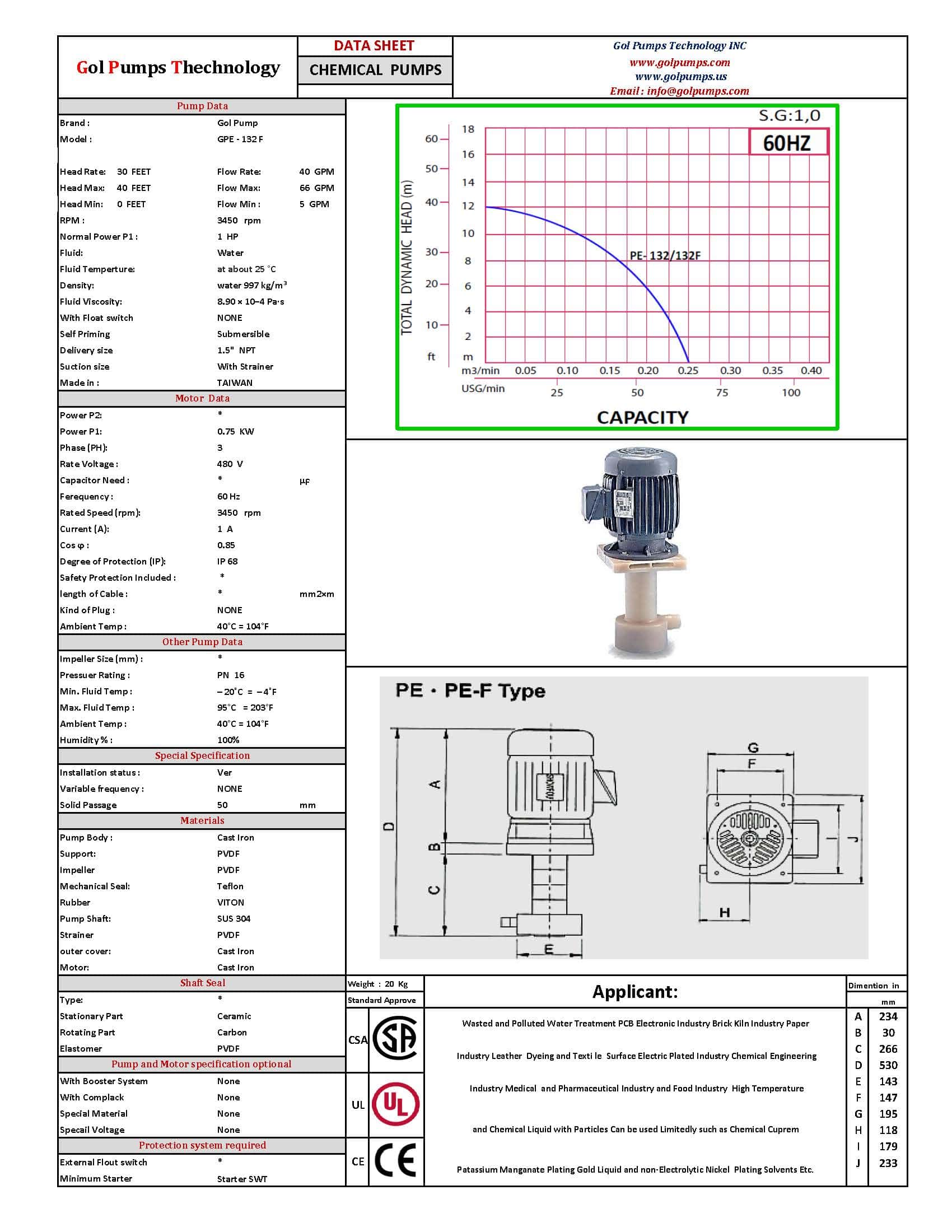 Gol pump provide FRPP and PVDF pump body to meet customer’s requirement.