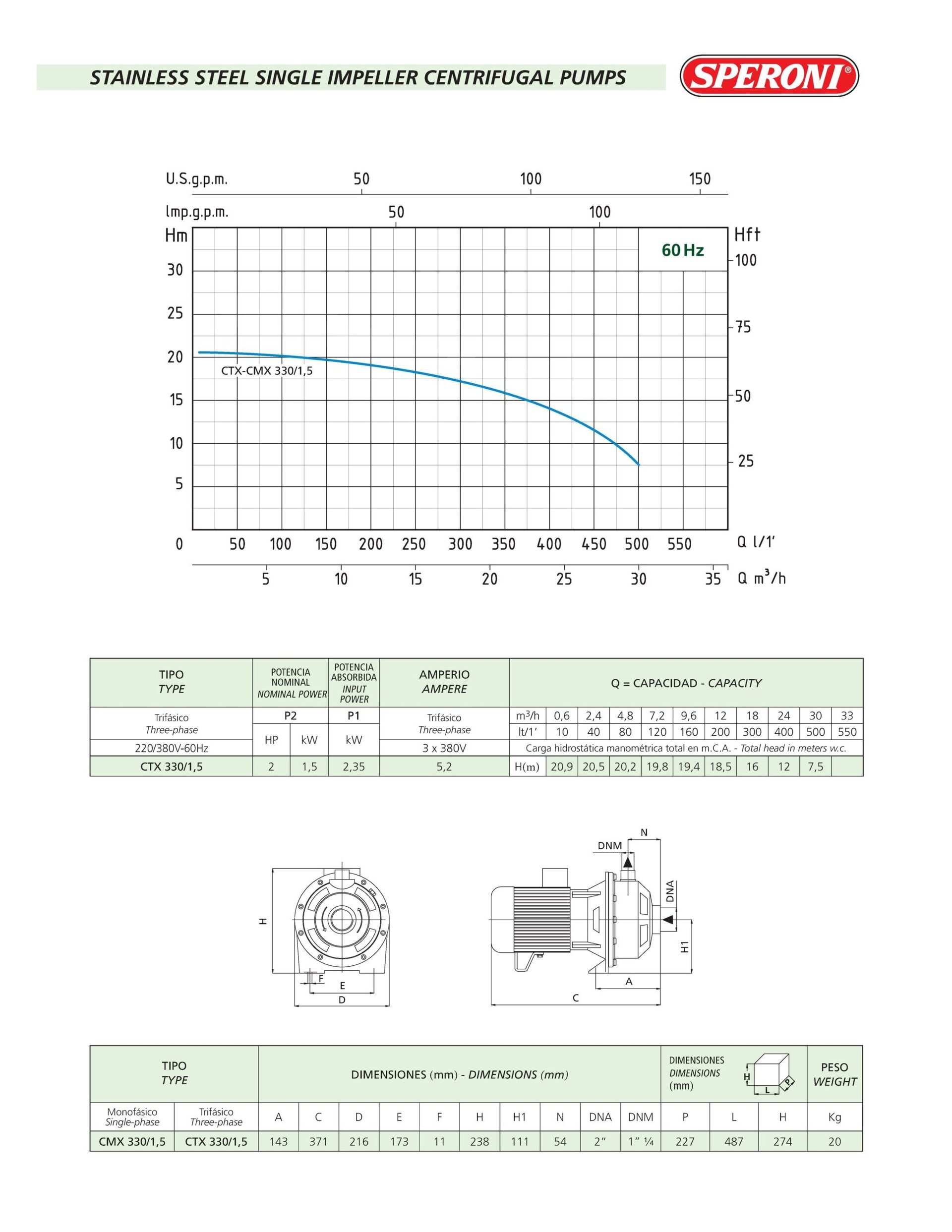 Single Impeller Centrifugal Water Pump 7200 GPH – 2HP – CTX330/1.5 – SS304 – 3P
