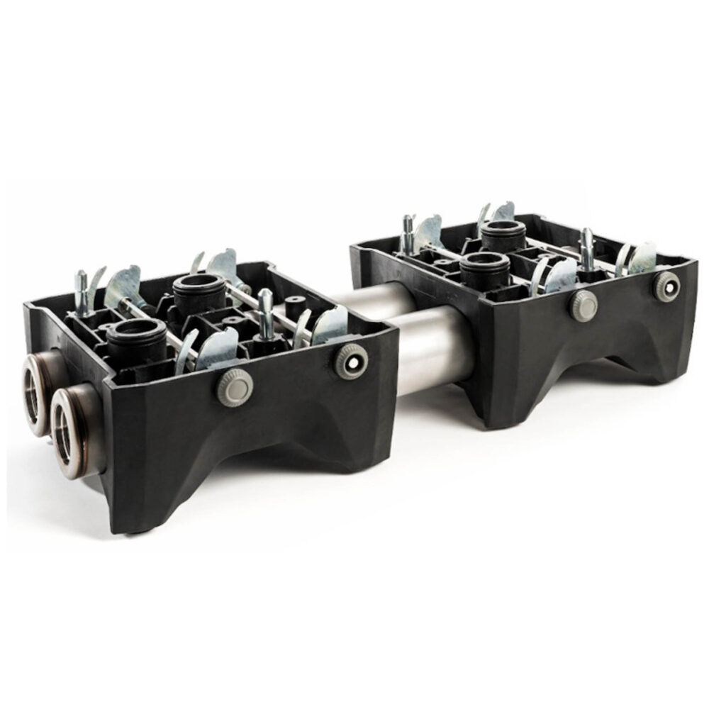 - Heavy duty stainless steel discharge head with built-in check valve for preventing back flow in connection with pump stoppage and the risk of destructive water hammer is reduced to a minimum.