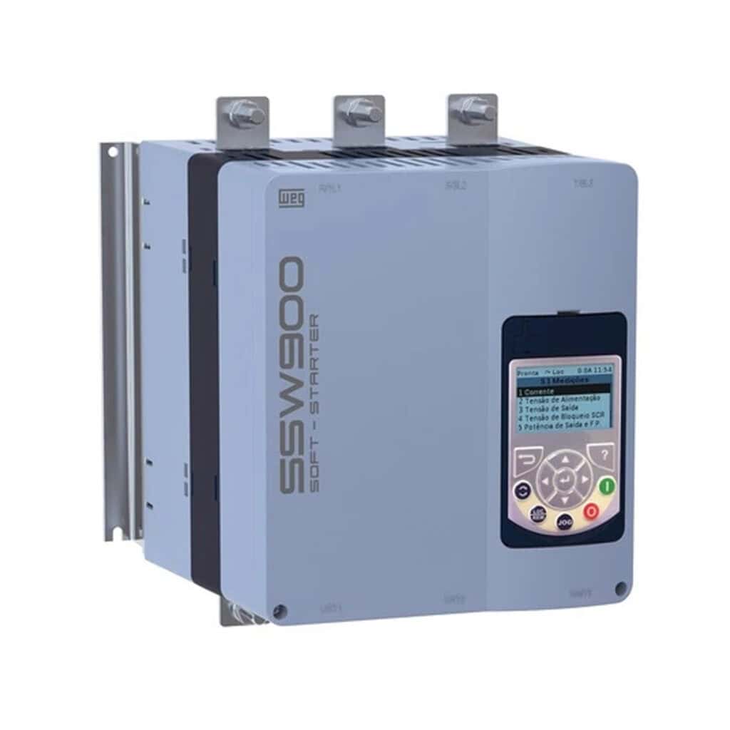 Soft-starters are drives dedicated to the smooth acceleration and deceleration of three-phase electric motors, by controlling the voltage applied to the motor. With proper adjustment of the variables, the torque produced is adjusted to the load requirement, thus ensuring that the requested current is the minimum required for starting. The SSW900 is a soft-starter with three-phase motor control, built-in by-pass and torque control. Intended to drive motors from 10 to 1.400 A.